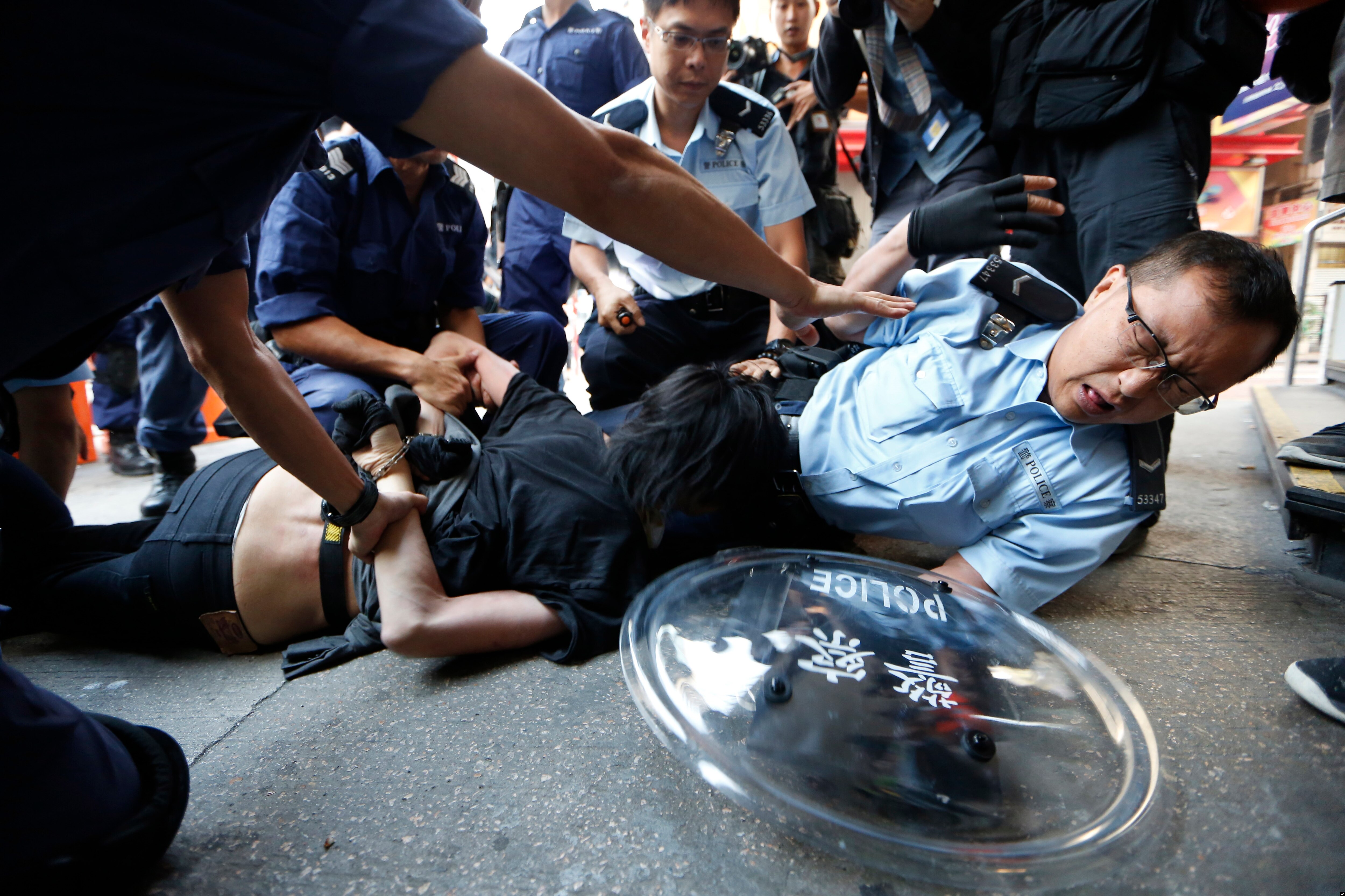 "Police strongly condemn those who participated in the unlawful assembly, charged police cordon and illegally occupied major thoroughfares in Mong Kok earlier this morning and last night. Such behaviors are neither peaceful nor non-violent. They seriously undermined public order and seriously jeopardized public safety,'' said Hong Kong Police Commissioner Andy Tsang.